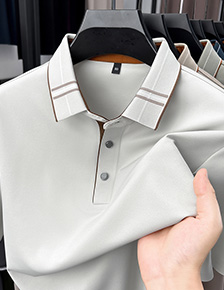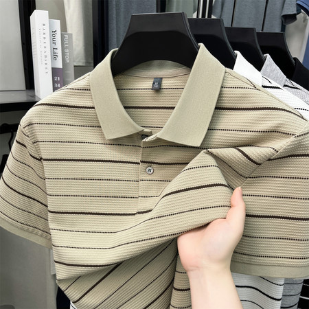 • 宝利发&86666手拍图-【老钱风】【冰玉条亲肤麻】男士夏季立领短袖POLO衫