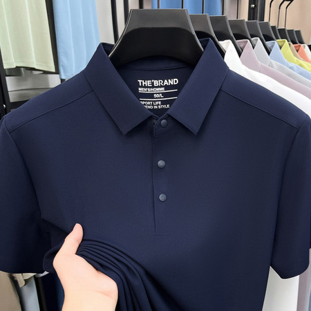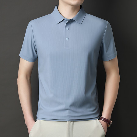 【2026新款短袖】t恤男夏季圆领打底衫半高领丝光棉半袖桑蚕丝V领纯棉翻领polo衫冰丝短袖纯色中年立领体恤